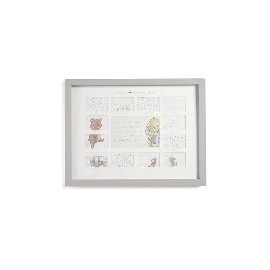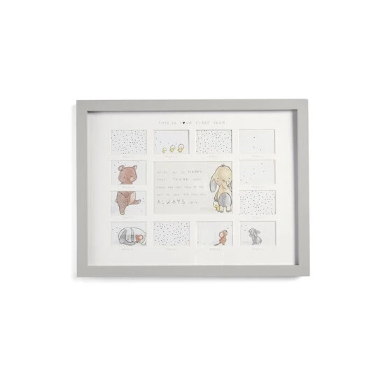 Mamas and Papas Always Love You range is a collection of lovingly created and beautifully realised gifts, stunning keepsakes for every single milestone. Mark every month of your child’s first year with our Always Love You 1st Year Frame. With 12 spaces for individual photos from every month of your child’s first year, you can chart their development as they grow.