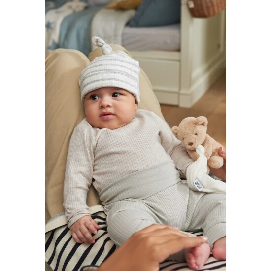These super-soft leggings are crafted from snuggly ribbed organic cotton and finished in a soft green tone. They’ve got grow-proof hems on the waist and ankle that you can roll up or down when your baby has a growth spurt. And thanks to the elasticated waistband, they’ll be really easy to pull up when it’s time for a change.