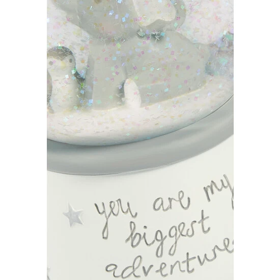 Mamas and Papas latest collection showcases two friends, Tiny the penguin and Star the elephant in a collection that blends soft greys and whites with striking silver. With this Tiny & Star Snow Globe new parents can introduce their little one to snow. The delicately hand-painted design brings soft pastel colours to your nursery, while the gentle Twinkle, Twinkle Little Star melody creates a soothing environment for little ones to drift off in.
