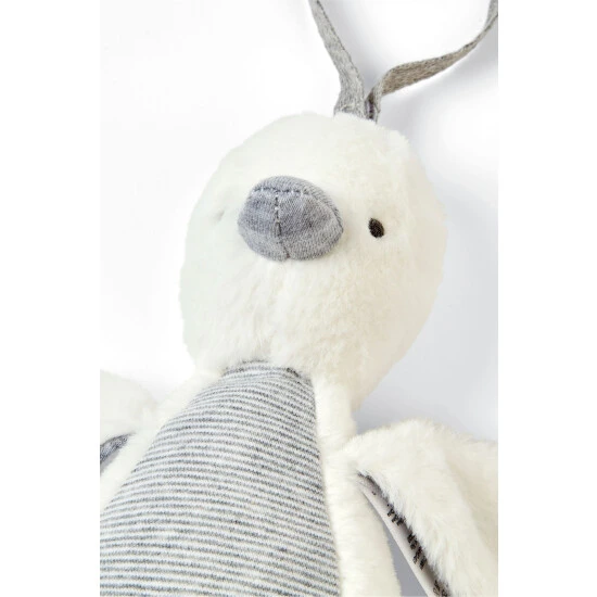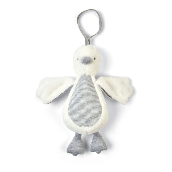 Mamas and Papas Welcome to the World toy and gift collection is full of reassuringly soft and friendly characters your child is sure to love. This beautiful range embraces super soft faux fur for a luxury feel that’s perfect for cuddles. Realised in crisp whites and subtle greys, with additional pops of colour, this range embodies stunning contemporary design and breathes new life into traditional soft toys. This grey chiming duck toy will make a musical travel buddy for your little one. Made from snuggly-soft fabric, it s got a hidden bell inside that makes a noise when it s shaken. And because it can be easily clipped onto your pushchair or carrycot, it ll keep baby smiling whilst you re out and about.