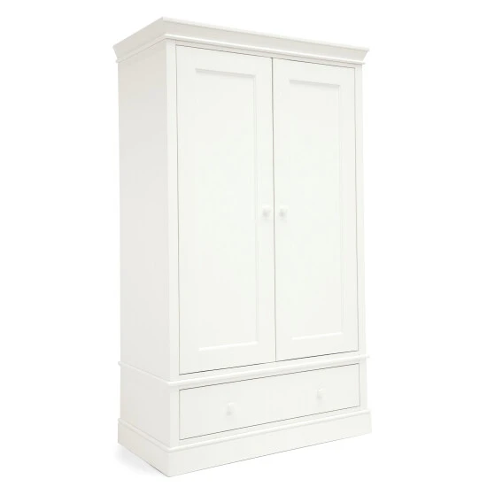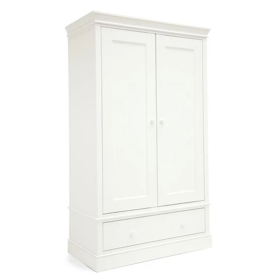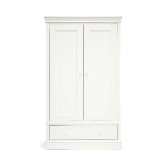 Embrace elegant heritage detailing with Mamas & Papas Oxford nursery furniture. Their most substantial collection, the striking cornice and plinth detailing and painted finish command attention while bringing a robust, traditional feel to your room. The Oxford wardrobe in white is the perfect way to store and organise your ever-growing collection of tiny tops, baby blankets and teddy bears. With two hanging rails, a drawer and an adjustable shelf, this nursery wardrobe gives you plenty of space to customise and organise all baby’s things. Why buy me? Two full-length hanging rails make it easy to hang up clothes and organise little outfits. The adjustable shelf allows you to customise your white wardrobe and fit in smaller or larger items as you need to. Soft-close wardrobe – The soft-close doors and drawer ensure a peaceful nursery and plenty of undisturbed sleep for baby, and for you. Spacious drawer – Keep big blankets and bedding stored away in the wardrobe s deep drawers, or fill them with baskets (sold separately) for smaller items such as toys or shoes, helping to keep your nursery clean and tidy. Age Suitability: Birth+. Dimensions: H188 x W110 x D57cm approx. Assembly required. Health and Safety: British safety standard BS 14749:2016.