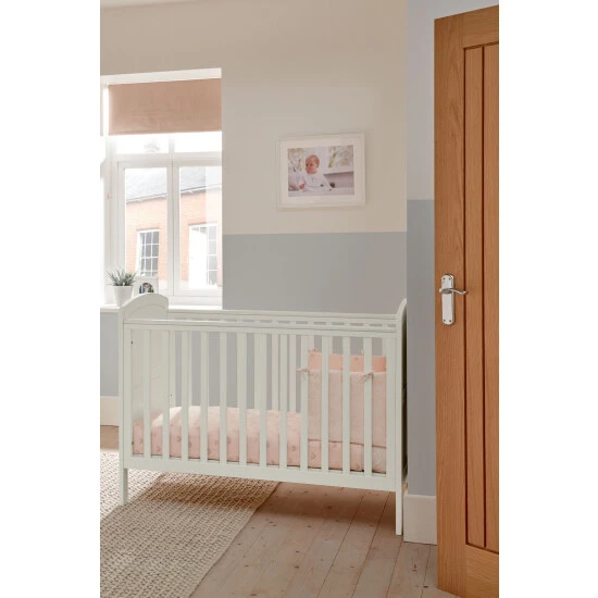 With its classic coastal-style curved edges and soft lines, the iconic Dover furniture range will bring a little bit of a seaside feel to your nursery. Designed and developed in-house at Mamas & Papas, it is finished with traditional panelled wood detailing and a clean painted finish. And with pieces that adjust as your little one grows and plenty of storage, the Dover range will make it a breeze to keep your nursery organised. Perfect for smaller nursery spaces, the Dover cot is designed to have a small footprint – so you’ve still got room for all of those outfits and toys. With two cot base heights that you can adjust as baby gets bigger, putting them down for a nap will be easy, and the two teething rails will soothe their sore gums whilst keeping your furniture protected from tiny teeth. Finished with beautifully soft curves and panelled ends, this comfy cot is perfect for those first snoozes.
