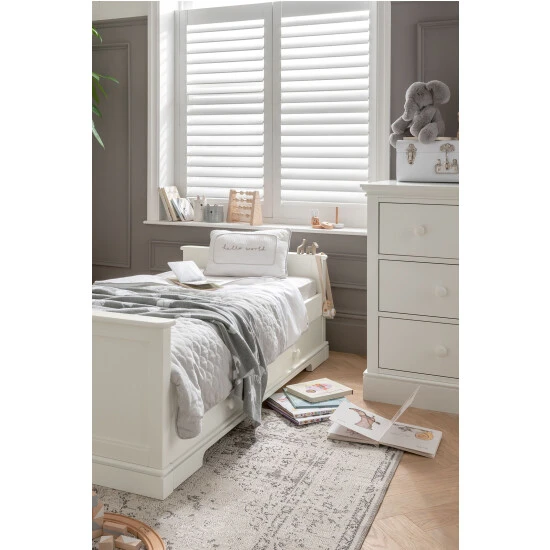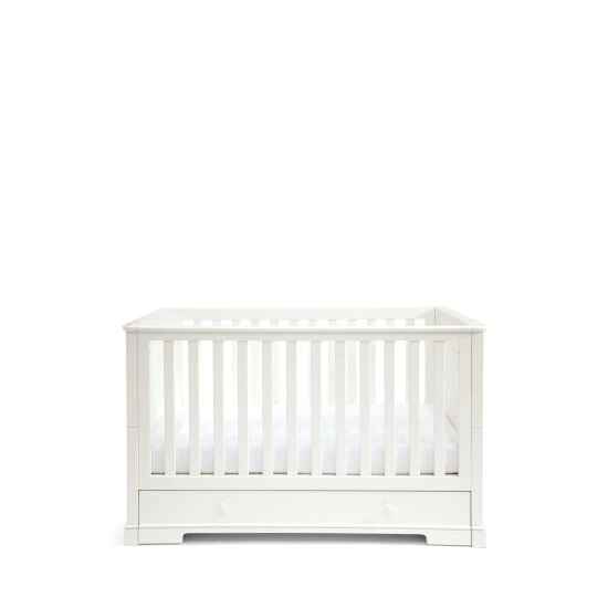 Worth £1,368, Save £89. Embrace elegant heritage detailing with our Oxford nursery furniture. Our most substantial collection, the striking cornice and plinth detailing and painted finish command attention while bringing a robust, traditional feel to your room. Why Buy Me? two Piece set includes cot bed and dresser changer. The cot converts into a day and toddler bed to extend its use. Adjust the base to two height positions for easy accessibility. Store bedding and other essentials in the soft-close, under-bed drawer. Dresser and removable changing top. Cot Bed features: the white cot converts into a day and toddler bed to extend its use, adjust the base to two height positions for easy accessibility. store bedding and other essentials in the soft-close, under-bed drawer. Dresser/Changer features: organise baby’s things with the Oxford dresser: the top drawer has two internal dividers and the middle drawer has one, transition from a changer to a dresser as baby grows by removing the changing top The unit fits any Mamas & Papas changing mat. Product specifications: age suitability: Cotbed: Birth 4 years approx, Dresser: Birth 11kg (12 months approx). Dimensions: Cotbed: H:89 cm x W:80cm x L:152 cm approx, Dresser: H:95cm x W:110cm x D:59cm approx. Assembly required. Health and Safety: British safety standard BS 14749:2016. You’ll need to buy a separate mattress to use with this cotbed.